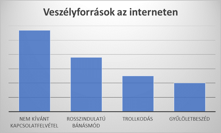 A veszélyforrások közül a nem kívánt kapcsolatfelvétel a leggyakoribb: a magyarok 57%-a szembesült ezzel, amely 16%-kal magasabb a felmérésben résztvevő többi ország átlagánál. Ezt követte a rosszindulatú bánásmód, melyben a magyarok 38%-a érintett, míg a globális érték csupán 21%. Trollkodásra a magyarok 25%-a, gyűlöletbeszédre 20% panaszkodott, szemben a globális 19 és 16%-kal.