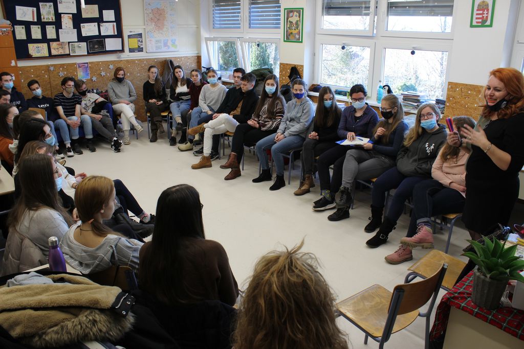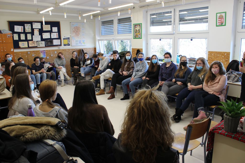 A korábbi debreceni és szerencsi látogatásainkhoz képest más felállásban érkeztünk Gödöllőre, a Premontrei Szent Norbert Gimnázium 12/c osztályához. Ezúttal Fehérvári Krisztina, az Erzsébet Ifjúsági Alap felnőttképzési szakmai vezetője tartott velünk, aki profi trénerként és coach tanácsadóként vállalta, hogy egy körülbelül 4 órás foglalkozás keretében segít elmélyülni a közösségnek a saját önismeretük és társismeretük konkrét megválaszolásra váró kérdéseiben, illetve megerősítések által próbál hozzájárulni reális önértékelésük megerősödéséhez.