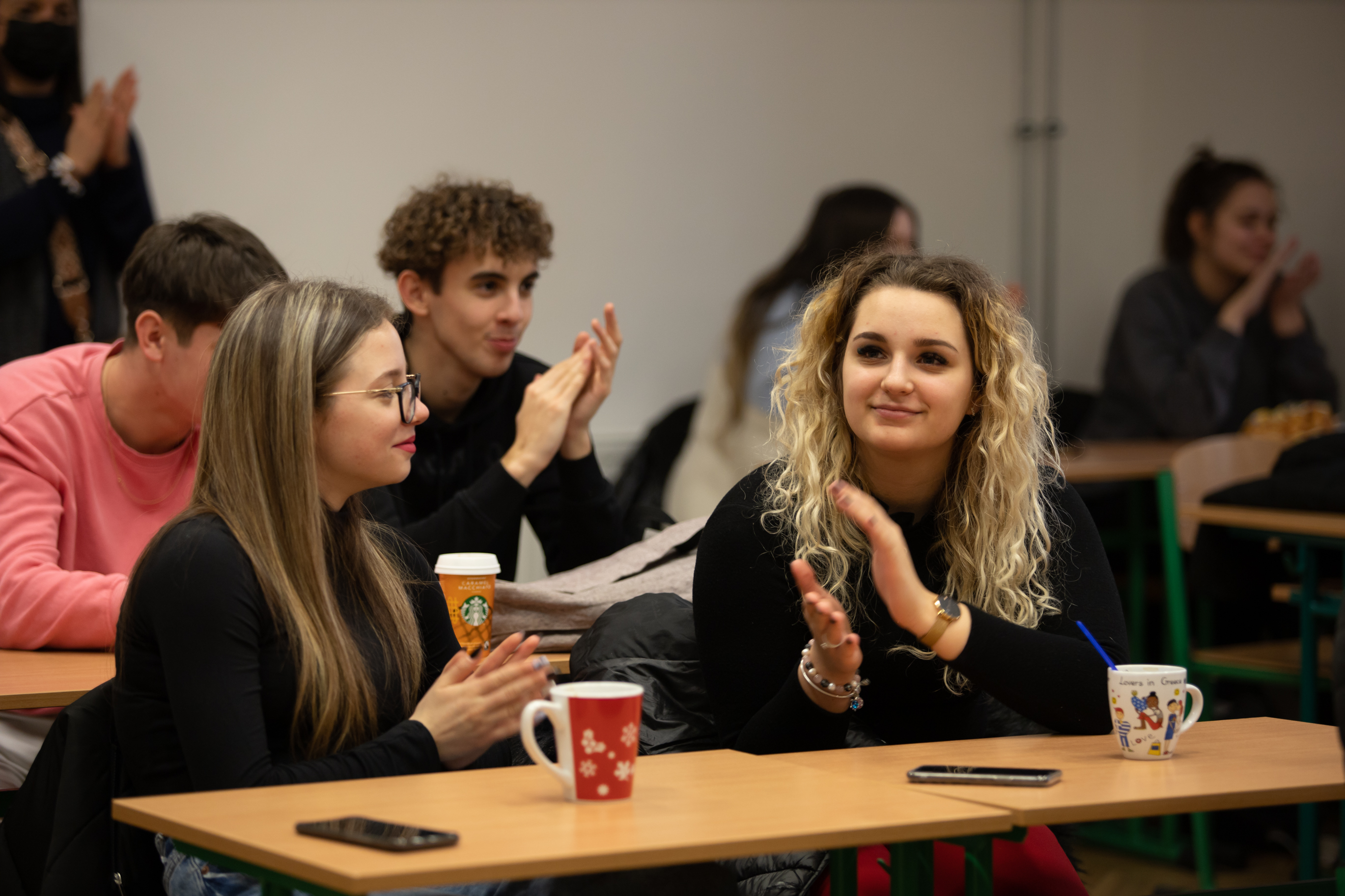 Becsengetés után a rendhagyó osztályfőnöki óra egy kötetlen beszélgetéssel indult. Kíváncsiak voltunk, hogy milyen élményekkel, tapasztalatokkal gazdagodtak az osztály tagjai a Fitmess kampány által, és hogyan élték meg ezt a bő két hónapot. Legtöbben a játék közösségkovácsoló erejét emelték ki, és ugyan maradt bennük egy kis hiányérzet, amiért nem sikerült nyerniük, de összességében mindenki nagyon örült az elért eredménynek. Maguk a diákok is említették, hogy nehezen indult számukra a pontgyűjtés, de mindig volt valaki, aki új lendületet adott a csapatnak. Ki több, ki kevesebb befektetett munkával, de mindenki hozzájárult valamilyen módon a sikerhez. Jó érzés volt hallani, hogy kezdeményezésünk elérte célját, hiszen többen is elmondták, hogy soha korábban nem tudták a rendszeres testmozgást ilyen hosszú időn át beépíteni a mindennapjaikba, és ez a játék lezárása után is megmaradt.