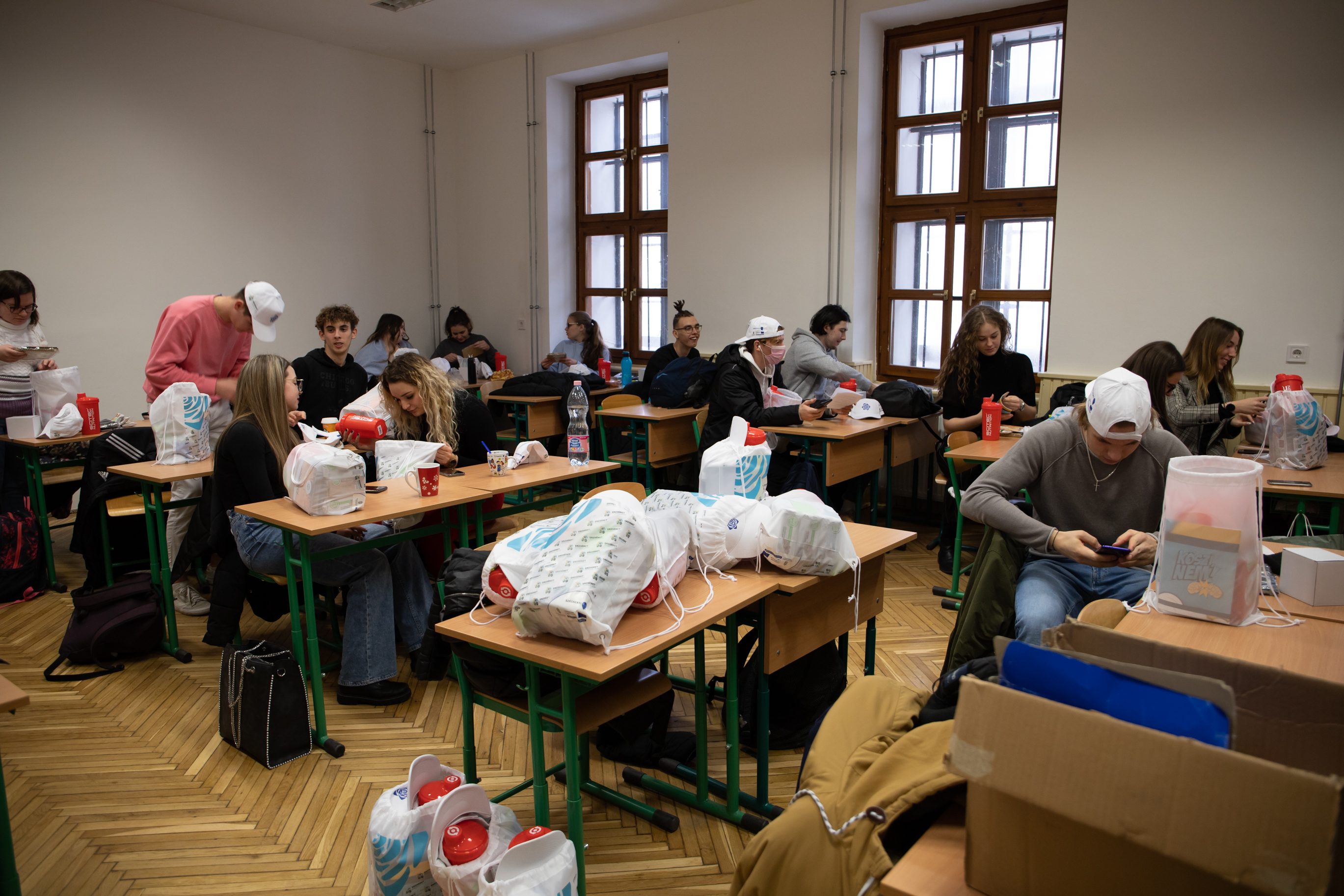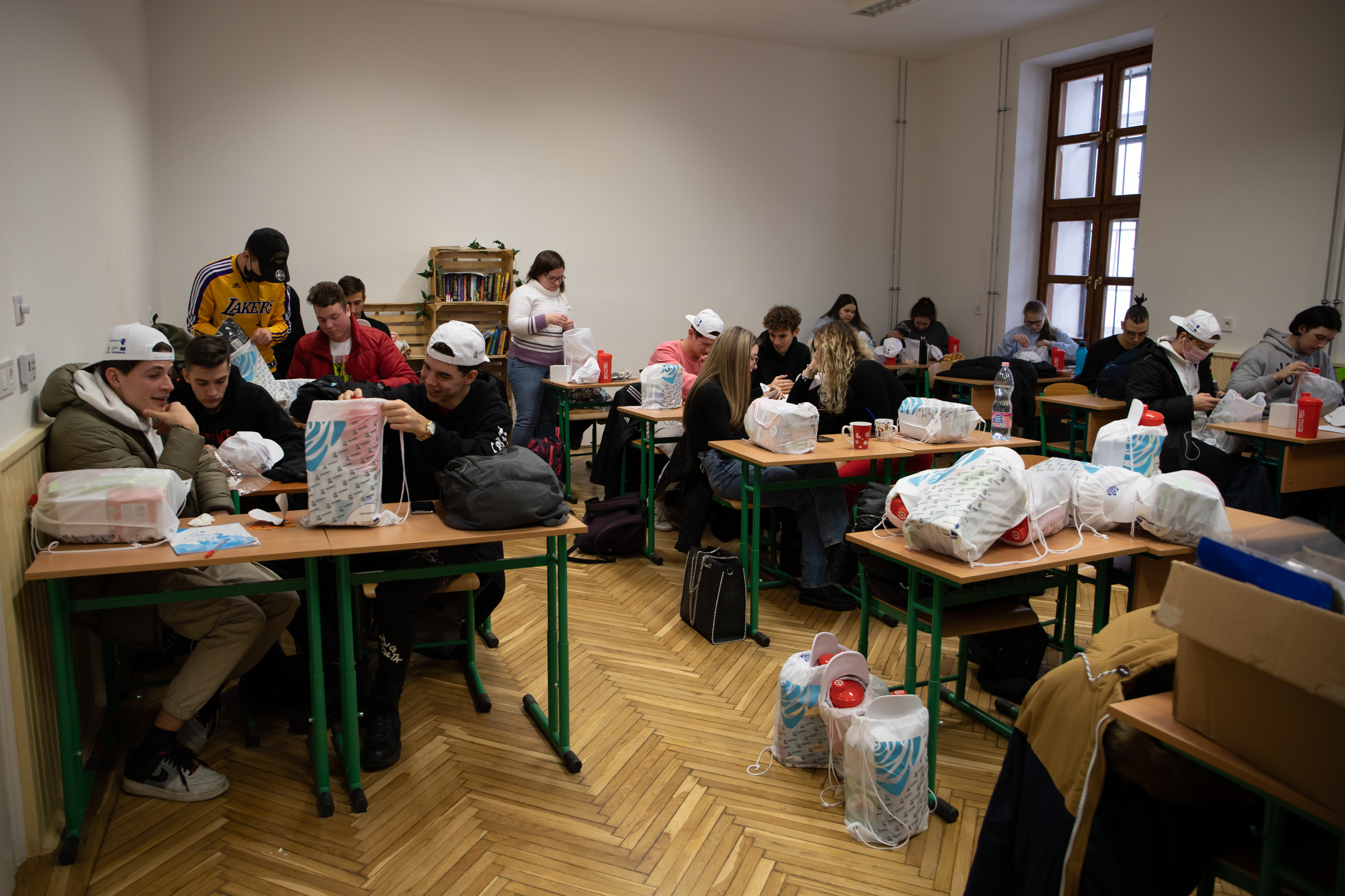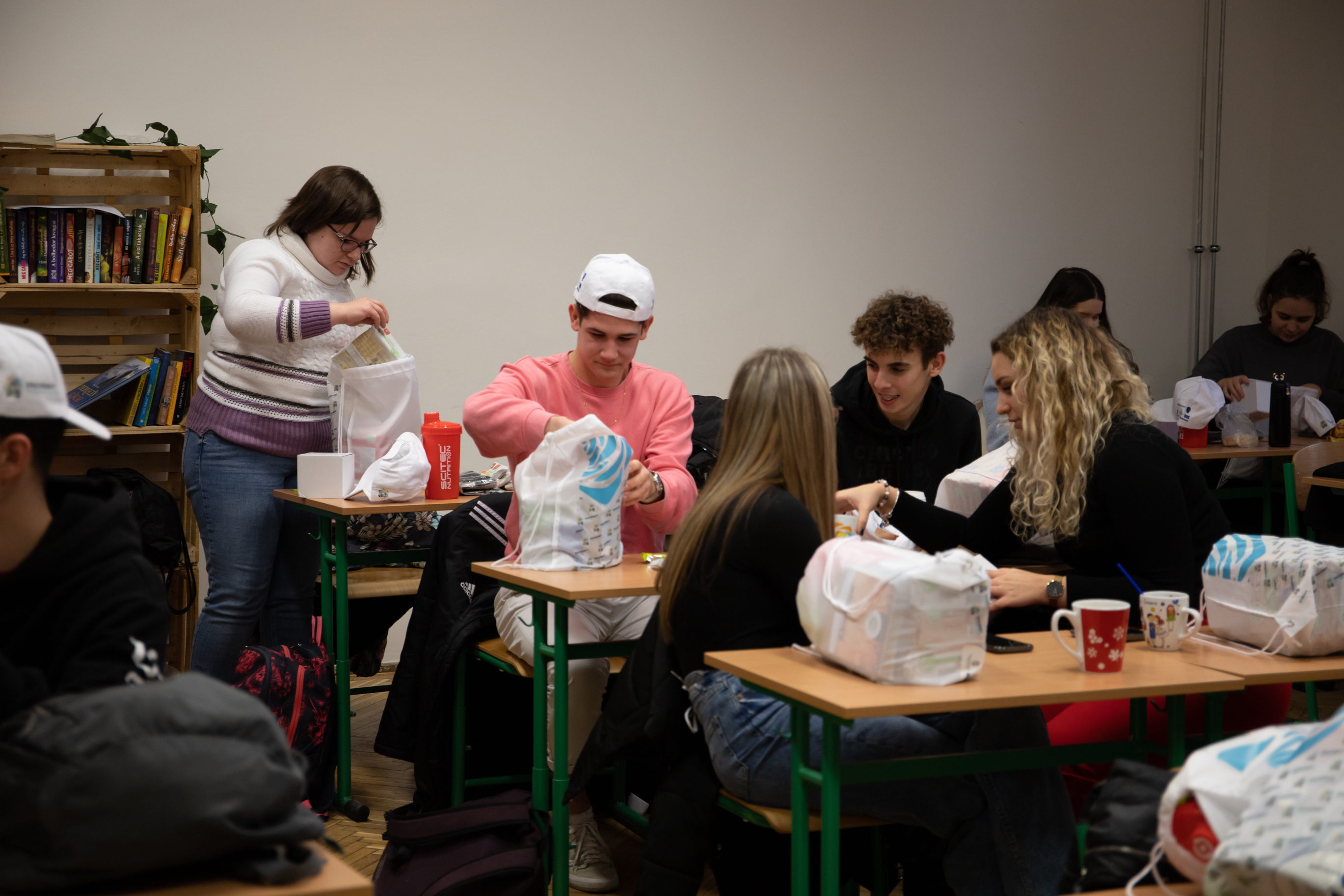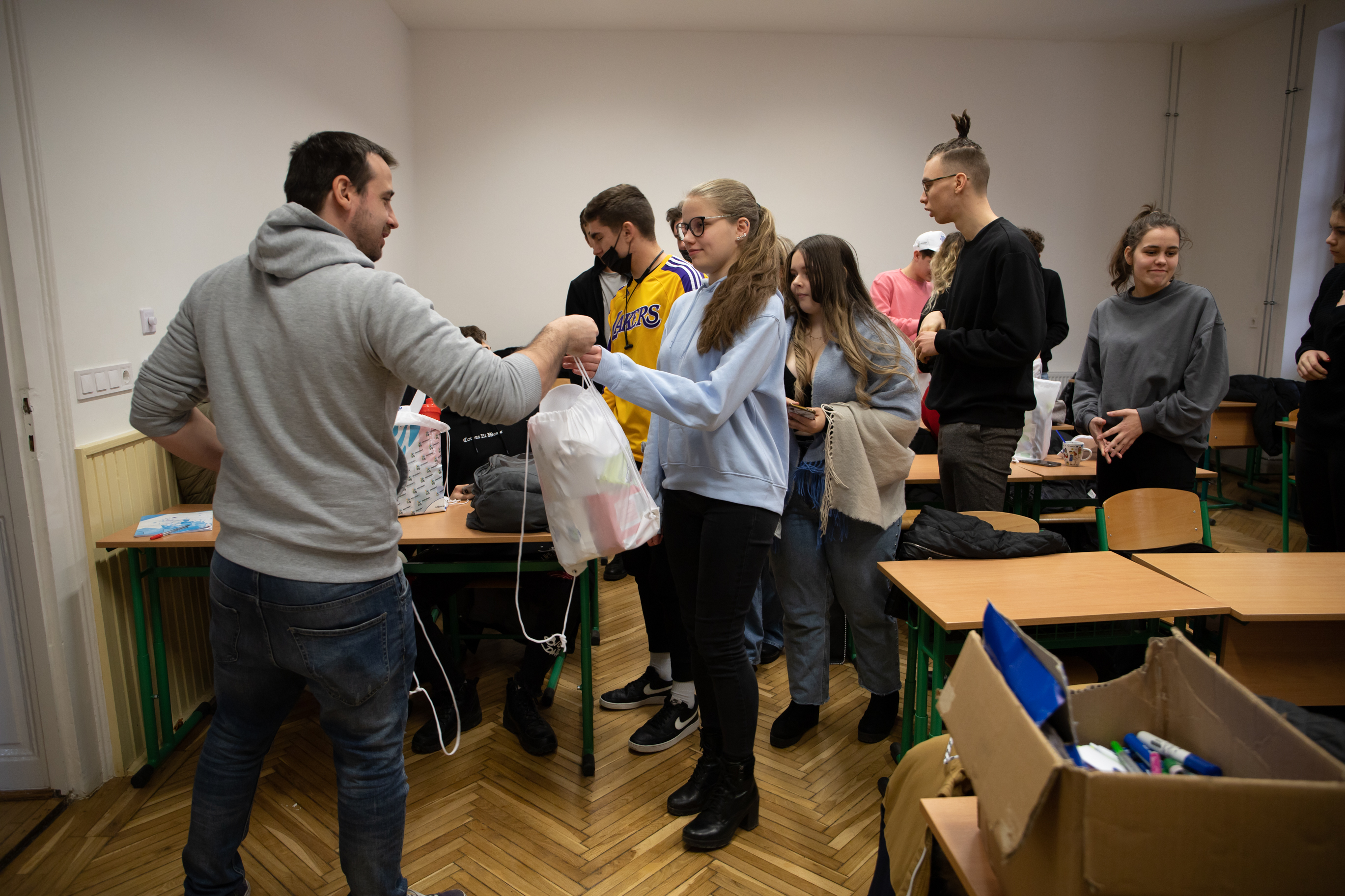A tanóra végéhez közeledve egy díszes oklevél kíséretében az osztály minden tagjának kiosztottuk az ajándékcsomagokat, melyeket a támogató partnereink (Scitec Nutrition, Abonett, Spar) jóvoltából csupa hasznos, egészséges és finom termékkel tudtunk megtölteni. A remek hangulatú találkozót egy csoportkép elkészítésével zártuk, mely ékesen bizonyítja, hogy a csomag tartalma pozitív fogadtatásra talált.