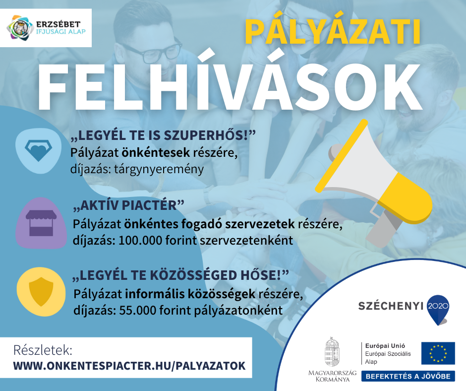 Május 1-jétől elérhetőek önkénteseknek szóló pályázataink, melyek a megújult Önkéntes Piactér oldalon zajlanak. Saját, kreatív ötleteitek megvalósítására anyagi támogatást biztosítunk, míg a legbuzgóbb önkéntesek többek közt akár bluetooth hangszórót, drónt vagy okosórát is nyerhetnek!