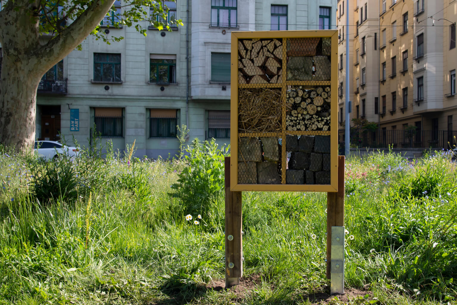Azt fontos szem előtt tartani, mielőtt mindenki sűrű, tömött sorokban nekiállna rovarhotelt kreálni otthon, hogy zöld terület legyen a közelben. Ugyanis a fajok többsége viráglátogató. Nektárral, pollennel táplálkoznak és ezzel látják el az utódokat is. Szóval a betondzsungel kellős közepe, nem a leg alkalmasabb. Legjobb, ha van olyan zöld terület a közelben, ahol a vad virágokat is meghagyják a kertészek (tehát nem mindenhol egyenletesen 5cm magas a fű, amit hetente vágnak, mert az a szép…). Erre már egyre több helyen figyelnek oda és tudatosan alakítják ki így a parkok miliőjét. Vagyis ha, a városban látsz gondozatlannak tűnő zöld területet, az valószínűleg tudatos, nem pedig az elhanyagoltság jele.