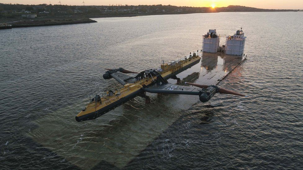 Az Orkney-szigetekhez közel elhelyezkedő Orbital O2 névre hallgató árapály meghajtású turbina egy új erőmű, amely áramot termel, és nem is keveset! A 680 tonnás építmény az elkövetkező 15 évben 2000 lakás és egy zöldhidrogén-telep energiaszükségleteit fogja fedezni. Úszik a víz felszínén, de természetesen egy négypontos, láncos kikötési rendszer biztosítja a pozícióját. A mintegy 74 méter hosszú testen 18 méteres „karok” vannak elhelyezve, a végükön kettő, egyenként 20 méter átmérőjű rotorral.